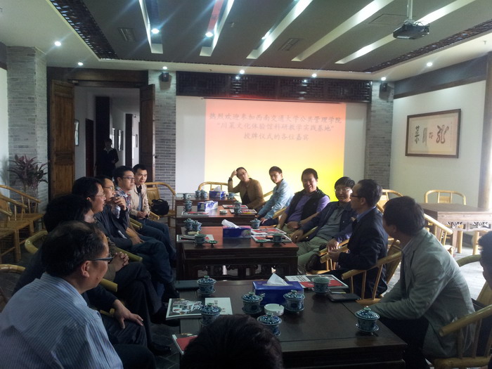 仪式结束后,与会双方就可能合作的领域、川菜文化体验馆建设、郫县经济文化发展等议题进行了深入交流,并共同商定将从年轻教师挂职锻炼、课题合作攻关、学生和教师的假期实习与教学实践等多个方面扎实推进学院与成都蜀都文化旅游投资发展有限公司和郫县的合作与交流。