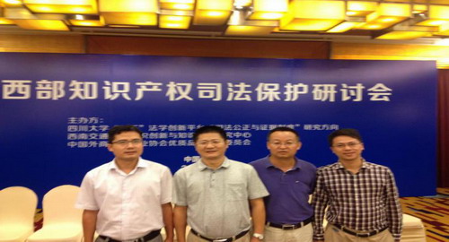 由四川大学“985”法学创新平台“司法公正与证据制度”研究方向、西南交通大学知识创新与知识产权研究中心和中国外商投资企业协会优质品牌保护委员会主办的“西部知识产权司法保护研讨会”,于2015年8月19日在锦江宾馆锦城厅举行。我校知识创新与知识产权研究中心陈家宏教授、徐兴祥、刘峰副教授和杨道现博士参加了会议。会议由四川大学法学院教授万毅主持,参加会议的还有四川大学“985”法学创新平台首席科学家龙宗智教授、四川省高级人民法院原副院长、四川省人民政府参事陈智伦教授、中国外商投资企业协会副会长、优质品牌保护委员会主席陈小东先生,最高人民检察院侦查监督厅知识产权处副处长李薇薇,四川省高级人民法院民三庭副庭长杨丽,四川省人民检察院侦查监督处副处长杨宁,成都市中级人民法院副院长胡建萍等四川市区法院、检察院、公安系统专家,以及西南财经大学、电子科技大学、西南民族大学教授、四川省知识产权中介商会会长、赛诺菲、强生、飞利浦、EPSON、Apple等世界500强的企业法律顾问、律师等60余人。