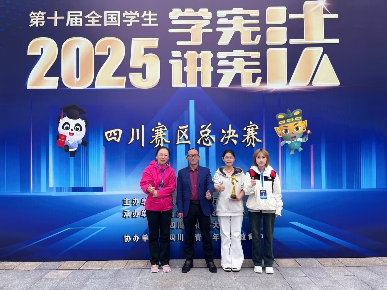 10月26日至10月28日,第十届全国学生“学宪法讲宪法”活动四川赛区总决赛在四川轻化工大学举行。本次大赛由四川省教育厅主办,青少年法治教育中心承办,设法治素养竞赛和演讲比赛两大项目,按学龄段分为小学、初中、高中和高校四个组别。经过覆盖全省139所高校的24个片区赛及各市(州)初赛的层层选拔,共有176名优秀选手晋级省级决赛。在学校校长办公室和公共管理学院党委的高度重视和精心安排下,张晶老师带领学院两名选手冲过了片区赛、小组赛和总决赛的三重考验,取得了历史最佳成绩。2023级学生谭亦婷在法治素养比赛中斩获全省亚军,2024级学生崔喆在演讲比赛中获得省级一等奖,展现了我院学子扎实的学识素养和深厚的法治情怀。