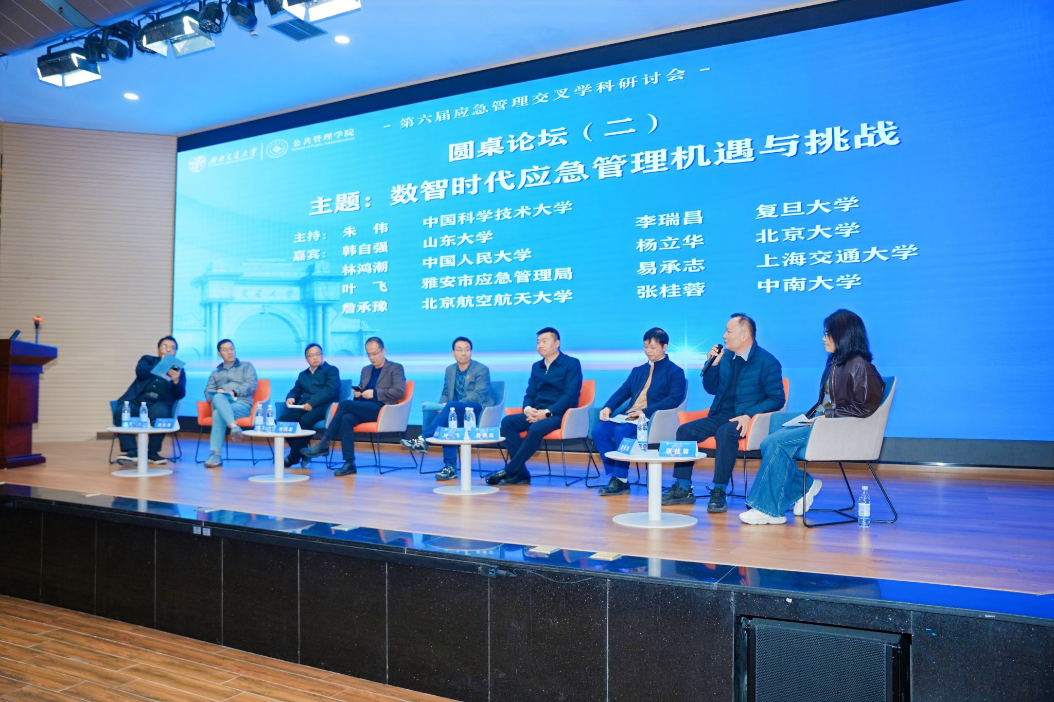 圆桌论坛(二)立足“数智时代应急管理机遇与挑战”主题,由中国科学技术大学公共事务学院朱伟教授主持。山东大学政治学与公共管理学院韩自强教授,复旦大学国际关系与公共事务学院李瑞昌教授,中国人民大学纪检监察学院林鸿潮教授,北京大学政府管理学院杨立华教授,雅安市应急管理局局长叶飞,上海交通大学国际与公共事务学院易承志教授,北京航空航天大学公共管理学院詹承豫教授,中南大学公共管理学院张桂蓉教授,聚焦“数智时代应急管理机遇与挑战”展开讨论,提出数智时代应急管理需坚持以人为本、系统推进的核心原则,在积极拥抱人工智能等技术创新的同时,必须警惕数据壁垒、算法偏见、技术依赖及伦理风险等新挑战,并通过深化数据共享、完善法规标准、强化基层应用,最终实现应急管理从被动应对向主动预防的转型。