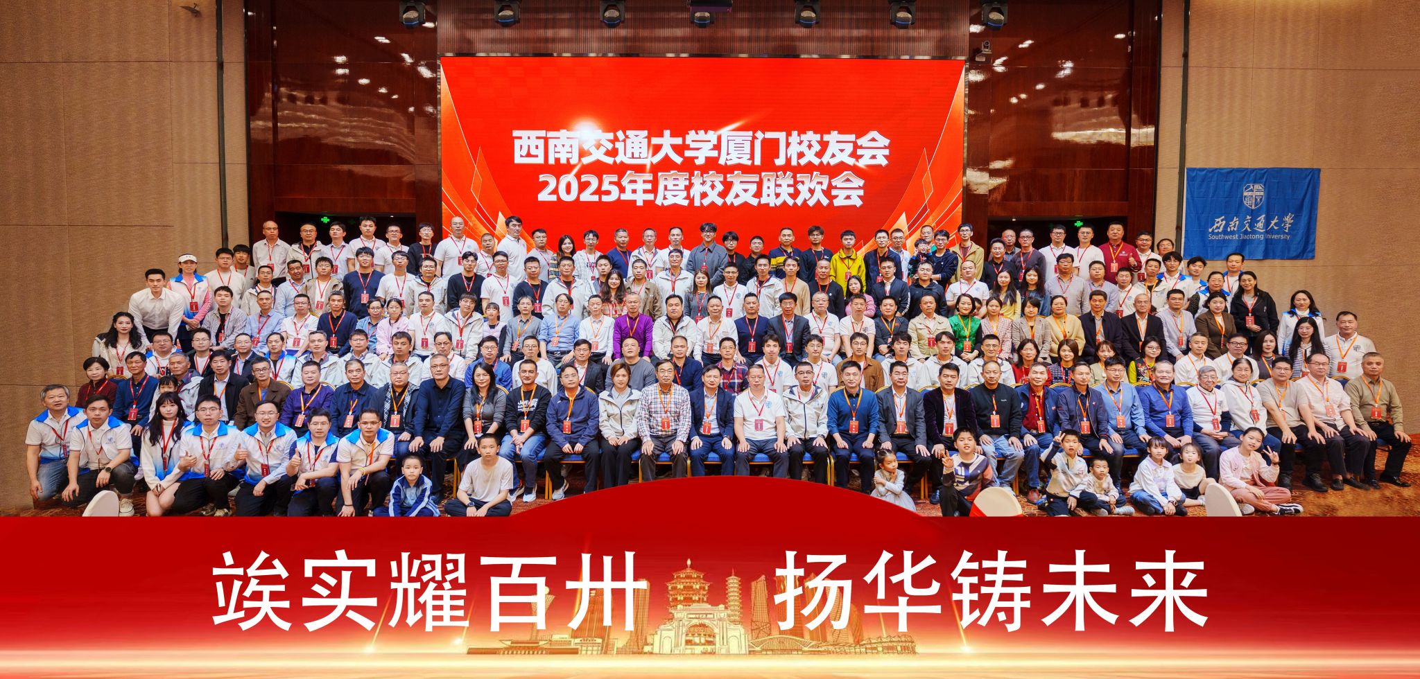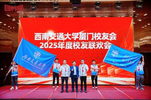 2025年12月6日至7日,西南交通大学厦门校友会2025年年会暨学校建校130周年全球交大人校旗传递仪式在福建省厦门市举行,西南交通大学党委常委、副校长何正友,校友总会秘书长陈岩峰,国有资产与实验室管理处处长邓永权,校友工作办公室(教育基金管理办公室)副主任刘堃,机械工程学院党委副书记沙晓雪、公共管理学院党委副书记薛婧等校院领导出席活动。西南交通大学福建省优质生源基地中学骨干教师代表、各地市校友会代表与福建省各地的交大校友齐聚鹭岛,在亲切交流中凝聚共识,为学校未来发展擘画蓝图。