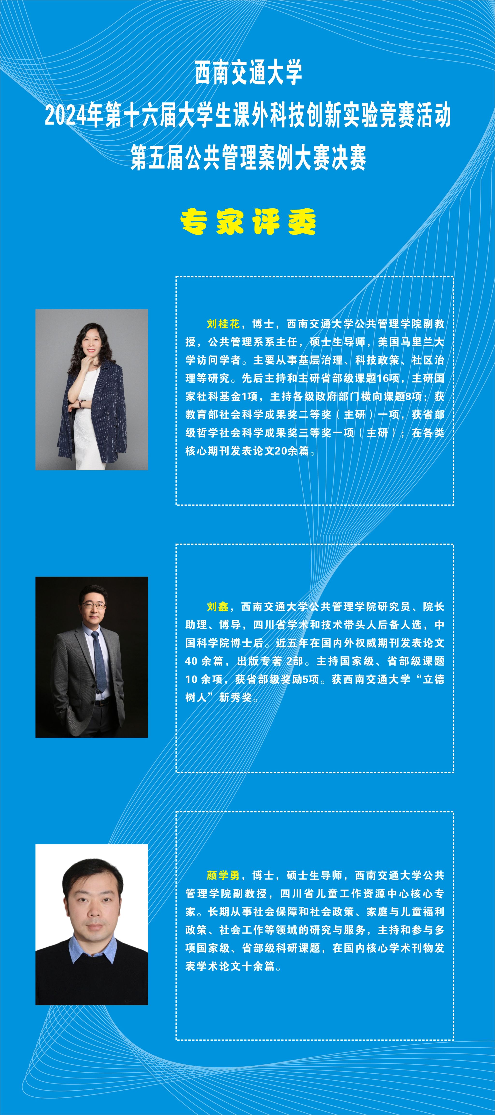 由教务处、校团委主办,公共管理学院、电子政务实验中心、公共管理学院团委、学生会、研究生会承办的西南交通大学第十六届大学生课外科技创新实验竞赛——第五届公共管理案例大赛在5月拉开帷幕。