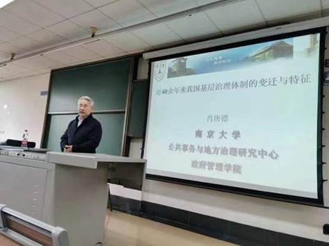 南京大学肖唐镖教授应邀来我院交流访问,继4月24日晚第一场学术报告之后,4月25日上午,肖唐镖教授在九里校区4509教室为大家作了《近40余年来我国基层治理体制的变迁与特征》的学术报告。报告由林晶晶副教授主持,学院教师、研究生及本科生认真听取了报告。