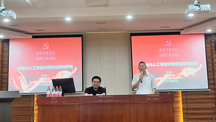 为帮助广大师生进一步深化对学术和技术前沿的认识,提升对政府治理工作的全面理解。2023年6月9日下午,我院特邀请到中央党校(国家行政学院)公共管理教研部博导、国家战略研究中心秘书长何哲教授,为我院师生作了题为“网络与人工智能对政府治理的影响”的学术讲座。讲座由王永杰院长主持,我院青年导师代表、公共管理专业研究生参加了此次讲座。