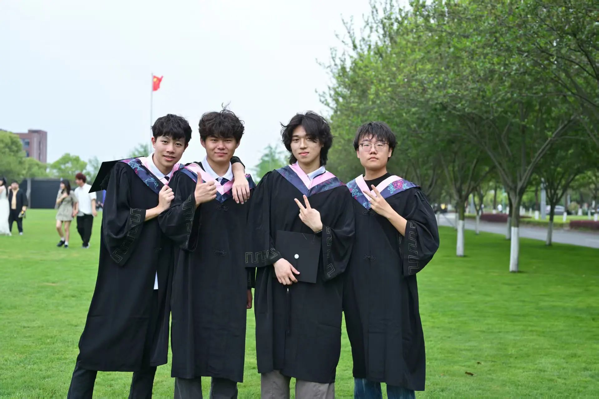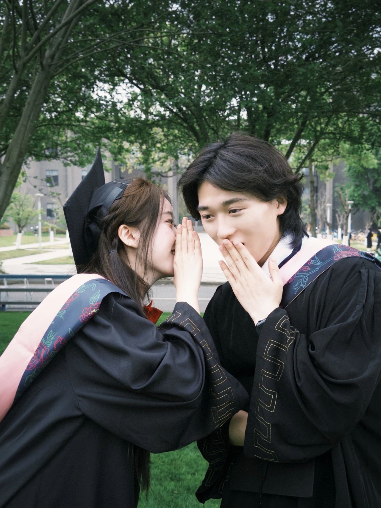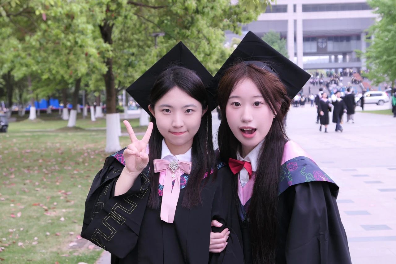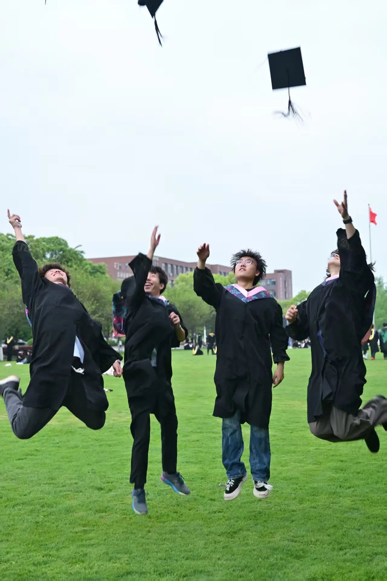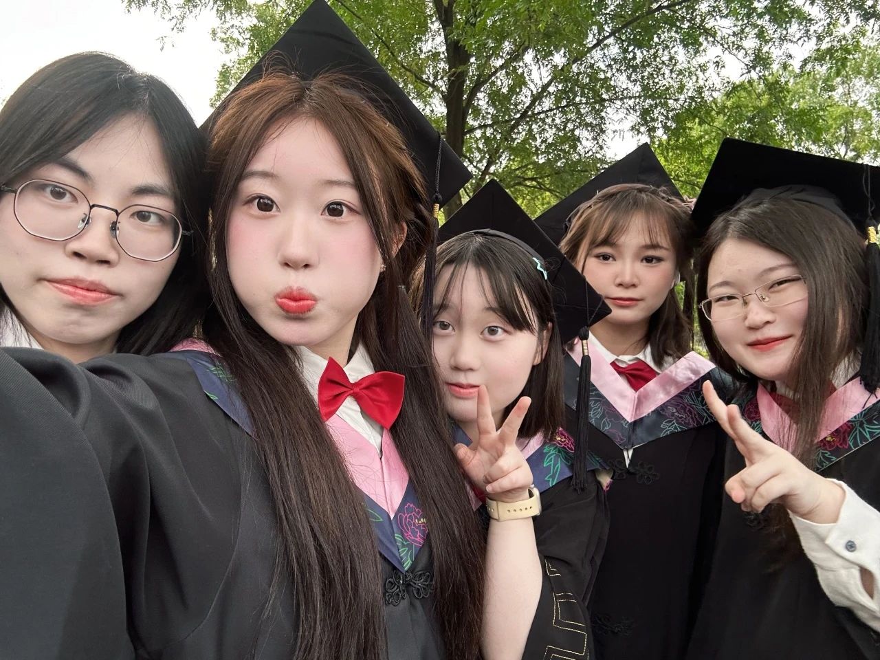 四月的风轻柔地掠过校园,树影婆娑,阳光明亮。穿上学士服的那一刻,我们才真正意识到,分别已悄然临近。草地上、林荫下、教学楼前——我们将四年的故事浓缩进一张张合影中。今天,我们站在人生的岔路口,轻声说出那句“再见”。