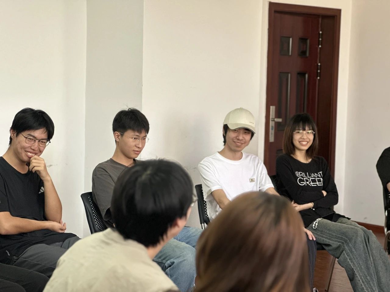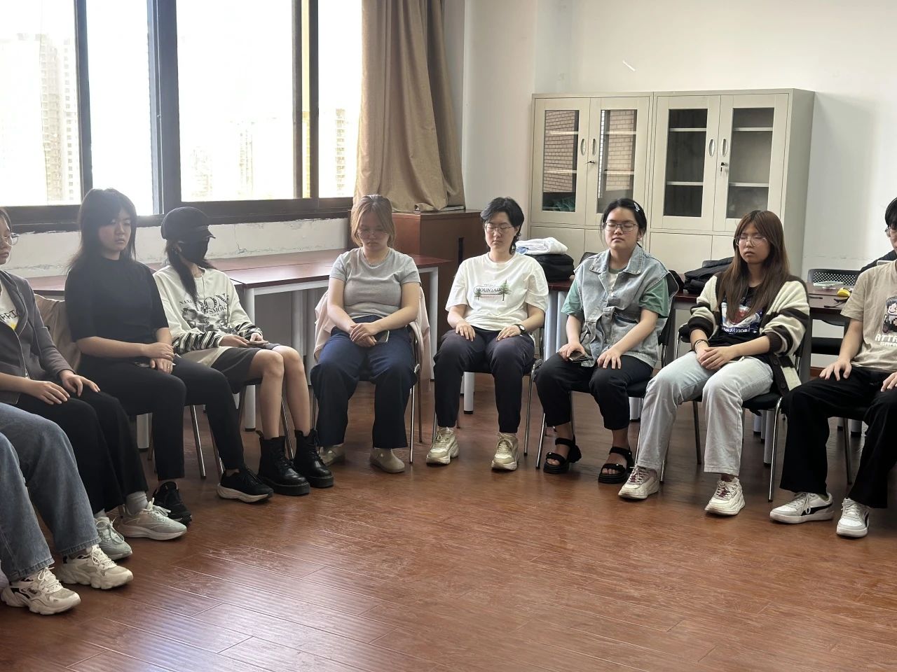 为了进一步打开同学们的接纳度,冯老师安排了趣味自我介绍环节,鼓励大家以最自然的状态表达自己。冯老师提到:“大家要做生活中的演员,专注觉知周围的一切,形成一个包容的状态,更好地接纳自己和他人。”在冯老师的带领下,同学们逐渐放松下来,纷纷沉浸其中,互相分享感受。