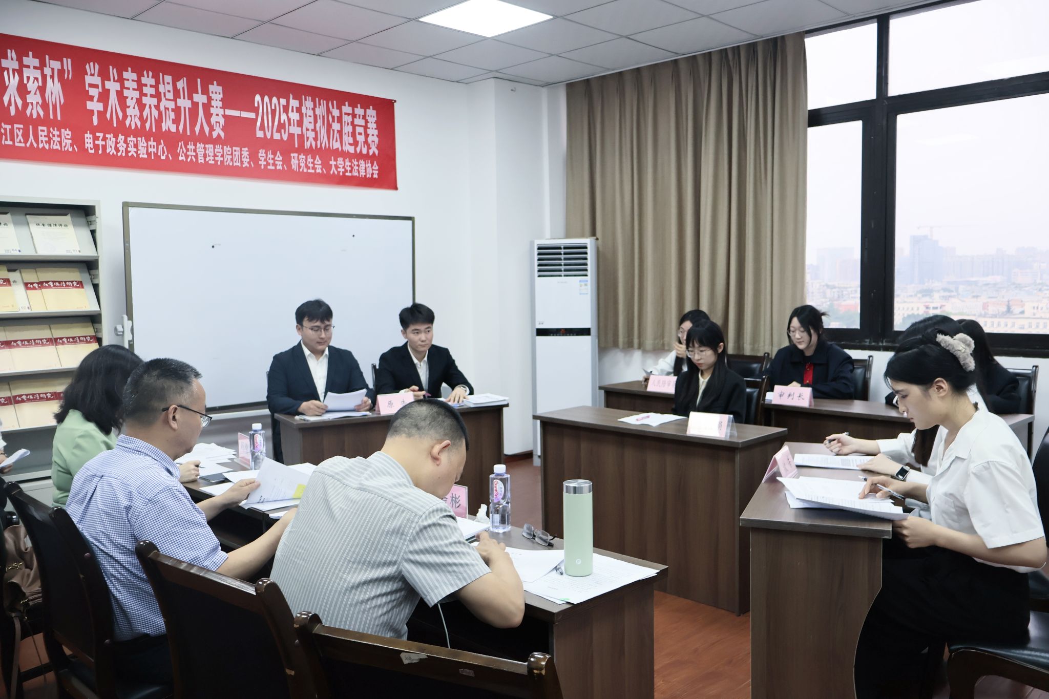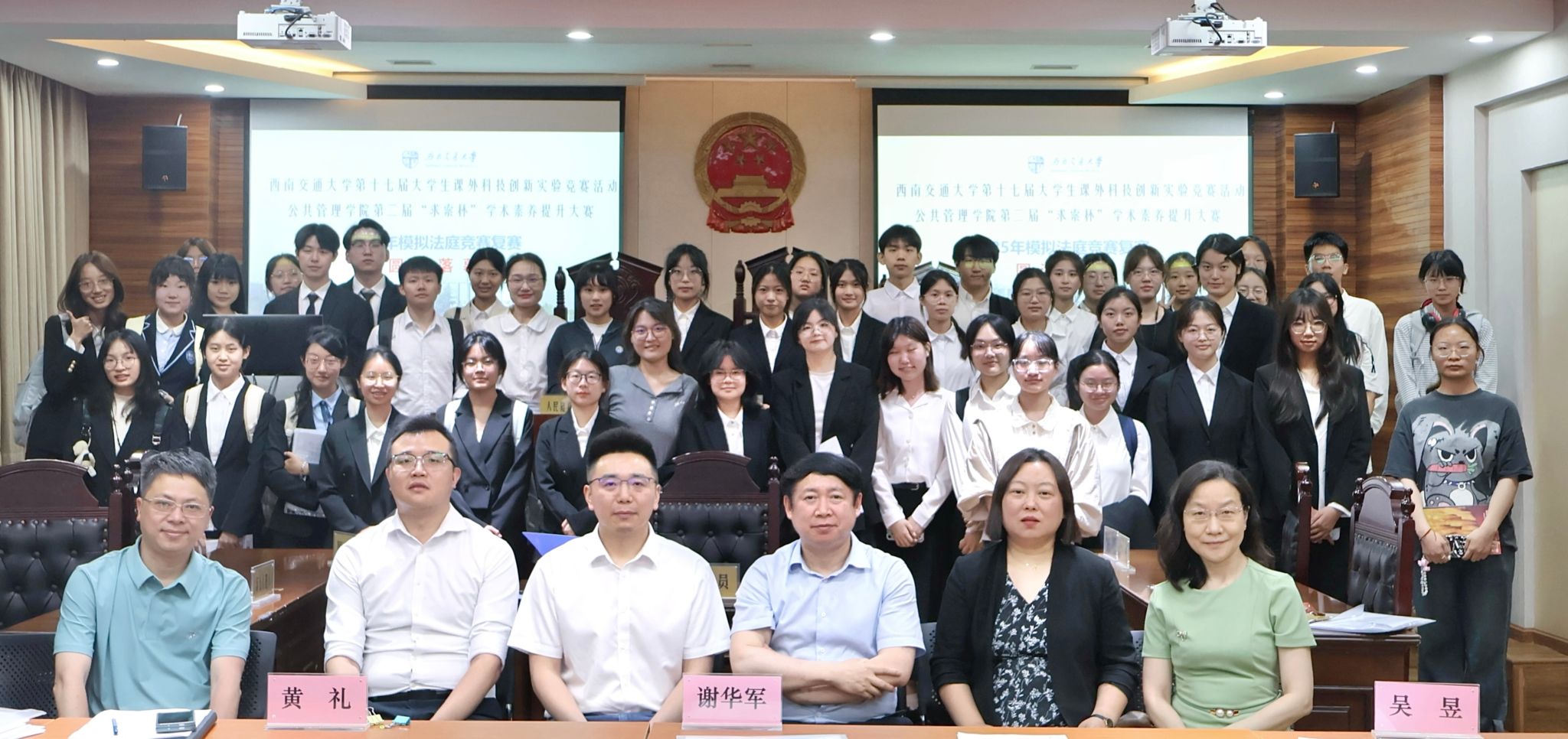 为深化法学教育理论与实践融合,提升研究生法律实务综合素养,2025年5月21日19:00,由西南交通大学研究生院主办,公共管理学院与成都市青白江区人民法院联合承办,模拟法庭实验室、公共管理学院团委、公共管理学院学生会、研究生会、大学生法律协会共同协办的第二届“求索杯”学术素养提升大赛暨2025年模拟法庭竞赛复赛,在九里校区拉开帷幕。