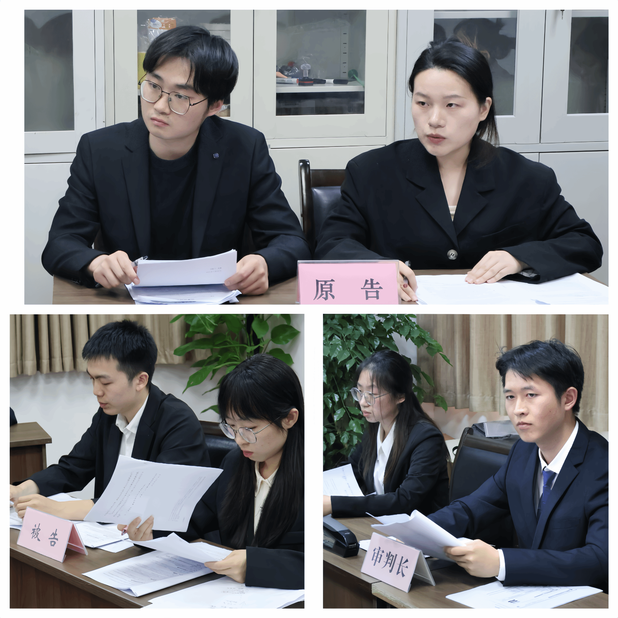 本次竞赛案例由成都市青白江区人民法院精心遴选和改编。经过初赛的激烈角逐,11参赛团队中的8支参赛团队凭借扎实的法律知识储备、严谨的逻辑分析能力和优秀的司法文书撰写水平脱颖而出,晋级复赛。复赛阶段,晋级团队分为A、B两组,分别在01112和0113教室展开循环对抗赛。法学系徐兴祥、程馨桥、朱奎彬三位老师组成A组评审团,杨成良、唐建华、杨道现三位老师担任B组专家评委,全程对赛事进行专业评审。