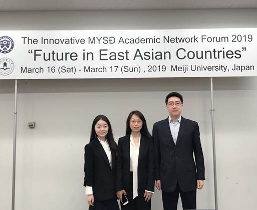 2019年3月16-17日,我院院长助理彭川宇副教授、刘鑫老师、代佳欣老师受学院委派,赴位于日本东京的日本明治大学参加主题为“Future in East Asian Countries”的The Innovative MYSD Academic Network Forum 2019国际学术会议。本次会议由日本明治大学主办,韩国延世大学、东北财经大学和西南交通大学共同参与,日本明治大学教务主任、国际交流委员会委员长武田巧教授、政治经济学部部长小西德应教授、政治经济学部教务主任加藤久和教授等日方学者对我院教师的来访表示热烈欢迎。