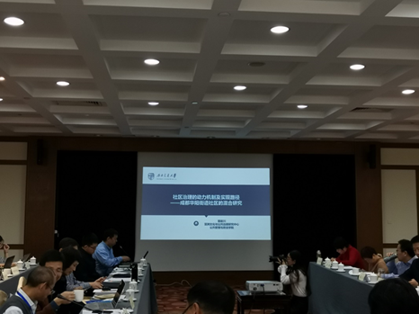 在报告中,雷叙川详细介绍了他所带领的科研团队对成都天府新区华阳街道相关社区社会治理状况的观察及分析,对近期研究成果进行了展示。研究采用定性与定量相结合的混合研究方法,对社区治理实现的动力机制及作用机制进行了较为深入的比较分析。报告引发了与会专家的热烈讨论。