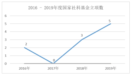 2019年度,学院在国家级项目上,取得历史最好成绩,共立项国家社科基金项目5项,占全校立项总数(15项)的1/3,在所有立项学院中名列第一。纵向比较来看(一个学科评估周期2016年-2019年),2019年国家社科基金立项占四年立项总数的62.5%,完成三年周期考核目标(国家社科基金10项)的50%。