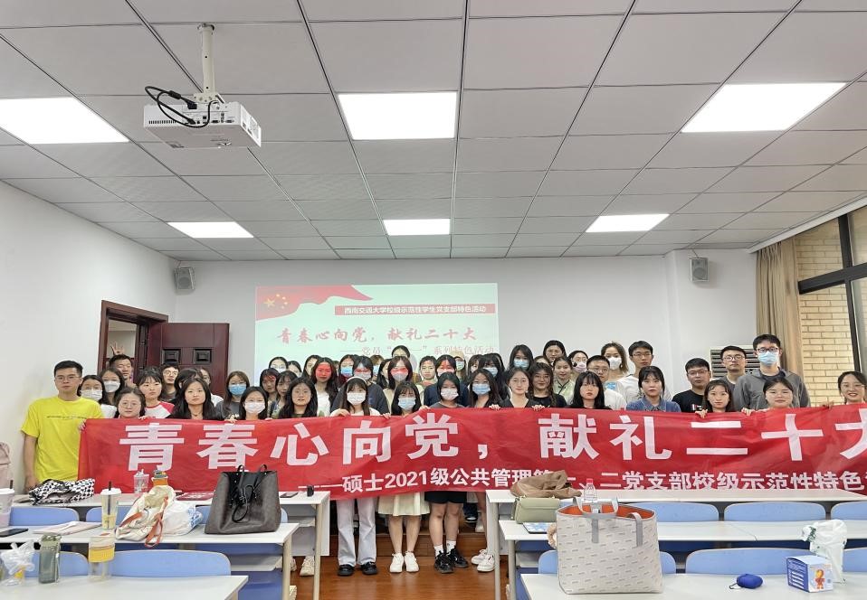 硕士2021级公共管理第一、第二党支部通过举办本次活动,以青春活力献礼党的二十大,将“请党放心,强国有我”的承诺印入每位同学的心里,使青年们明白祖国的未来靠的不止是上一代人,还有我们这一代,乃至下下代人,薪火相传,以青春之我,奋斗之我,担当历史使命,争当伟大理想的追梦人,争做伟大事业的主力军。
