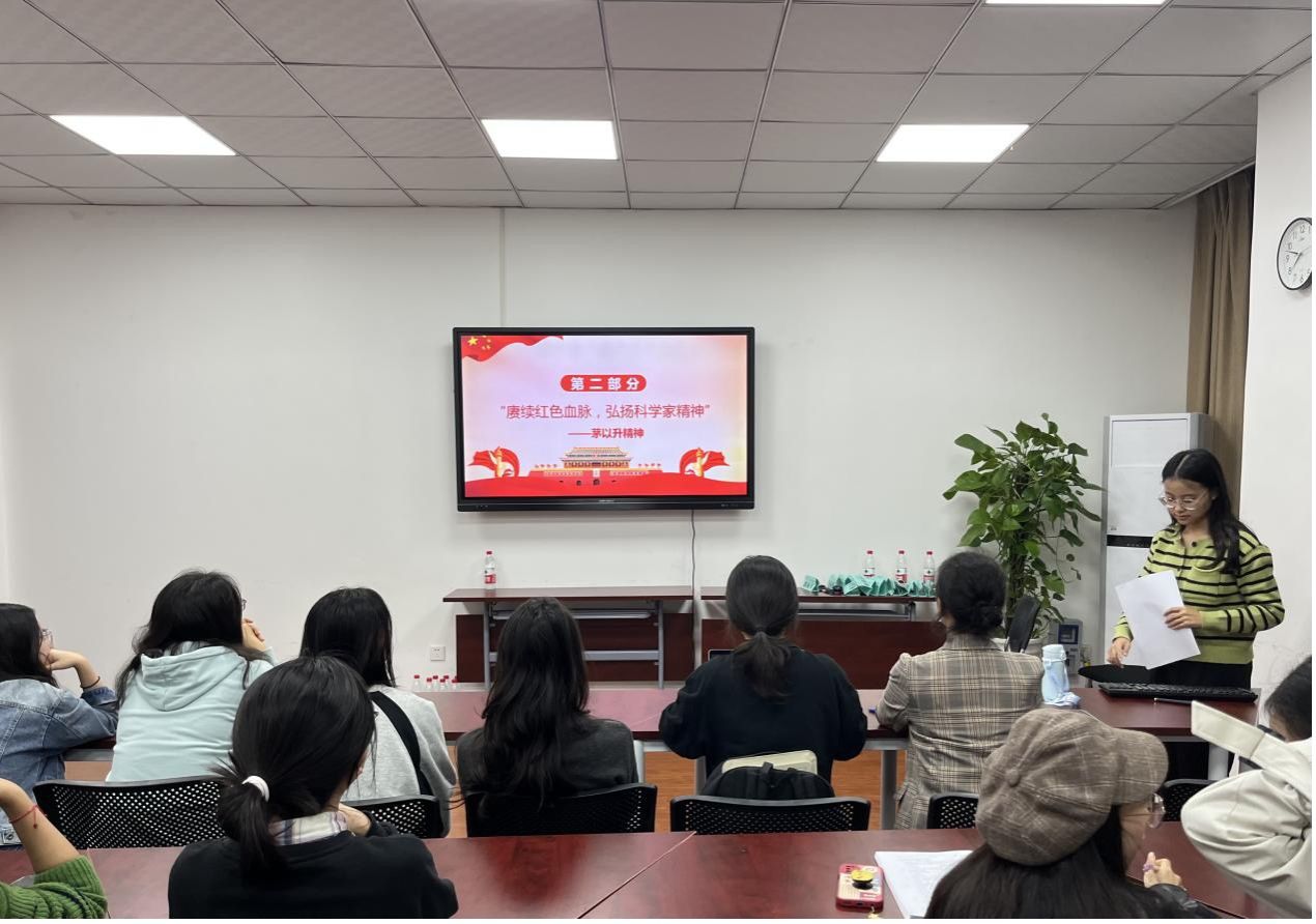此次党日活动共设有三项议程。首先由罗欣玥同志分享论文写作经验,促进党建与科研相融合;随后由张欢同志分享中国现代桥梁之父——茅以升的波澜壮阔的无悔桥梁人生;最后全体同志前往茅以升图书馆参观了《茅以升:百年巨匠,光影百年》主题展。