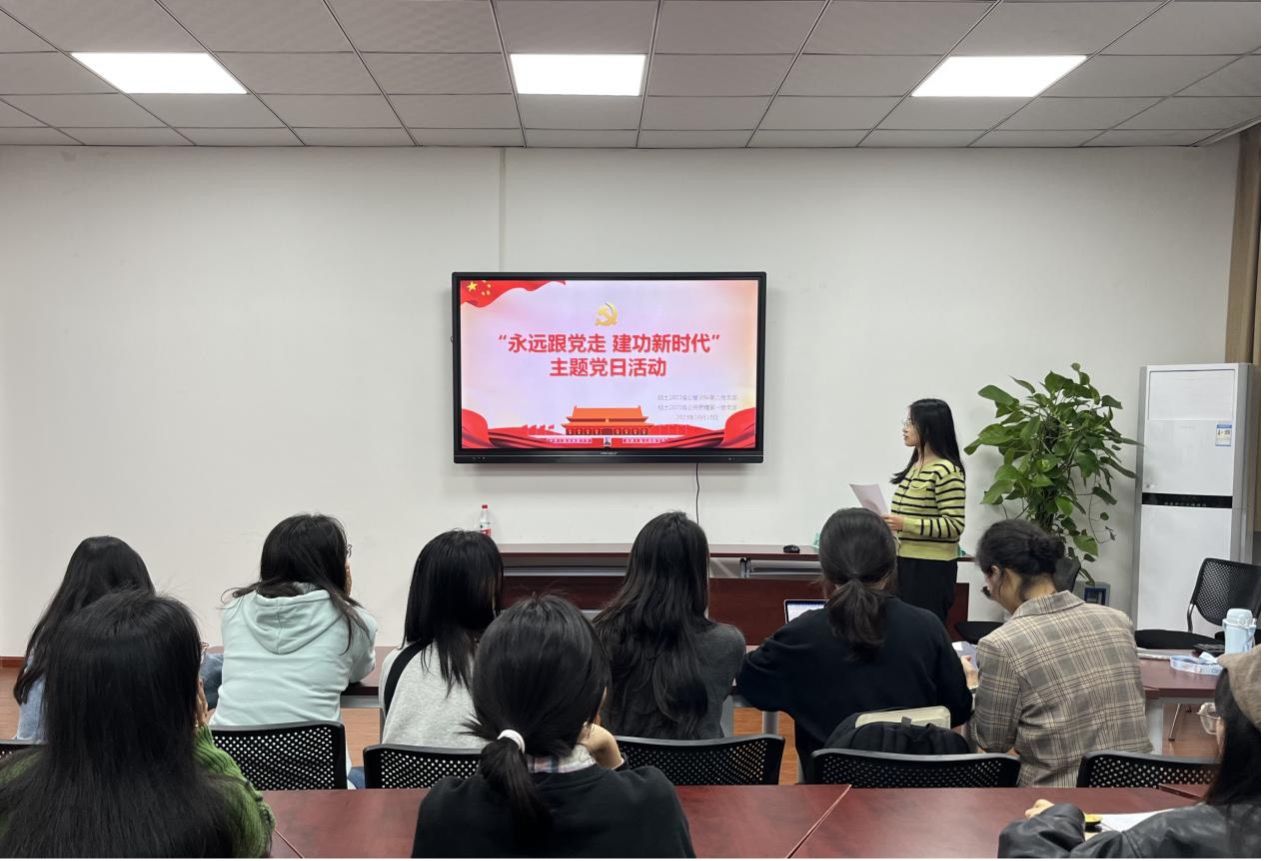 2023年10月19日19:30,硕士2022级公管资环第二党支部与硕士2021级公共管理第一党支部在零教1108联合开展“永远跟党走 建功新时代”主题党日活动。此次活动由硕士2022级公管资环第二党支部纪检委员张欢同志主持,两个支部党员和部分入党积极分子参加。