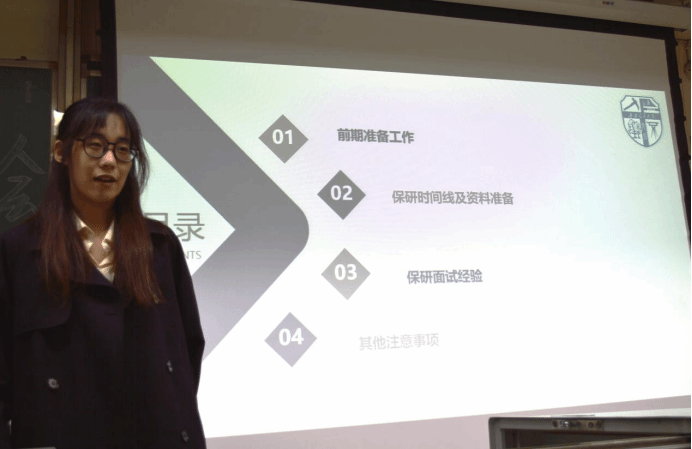 潘佳萱和冯锦两位同志认为成绩绩点是关键,学科竞赛和科研是锦上添花,其中公管专业的高数线代,统计学等都非常重要;尹丽颖同志亦认为专业核心课例如线代、矛盾论等非常重要,同时告诉同学们要学习好英语,打好英语基础;杨溢同志跨保到了行政管理专业,她拿自身举例,鼓励同学不要因为大一的失败或者是落后而放弃自己,要对未来充满希望,脚踏实地;她们都为同学们提供了清晰的择校和报考流程,告诉了同学们一系列的相关注意事项。