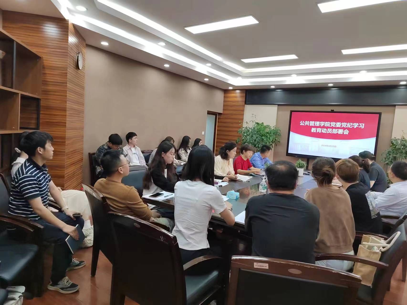 4月25日下午4:00,公共管理学院党委在九里校区01313召开党纪学习教育动员部署会,部署开展党纪学习教育相关工作安排。