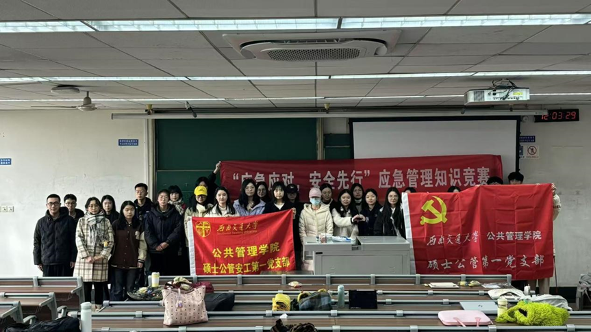 为规范突发事件应对活动,以法治方式推动应急管理体系和能力现代化,2024年6月28日,十四届全国人大常委会第十次会议通过修订后的《中华人民共和国突发事件应对法》。习近平总书记亦强调,既要高度警惕“黑天鹅”事件,也要防范“灰犀牛”事件。对此,公共管理学院硕士公管安工第一党支部于2024年11月27日在四号教学楼(逸夫馆)4509教室开展应急管理知识竞赛,以赛促学、以赛促用,深入学习应急管理的基本理论知识和实践技能。