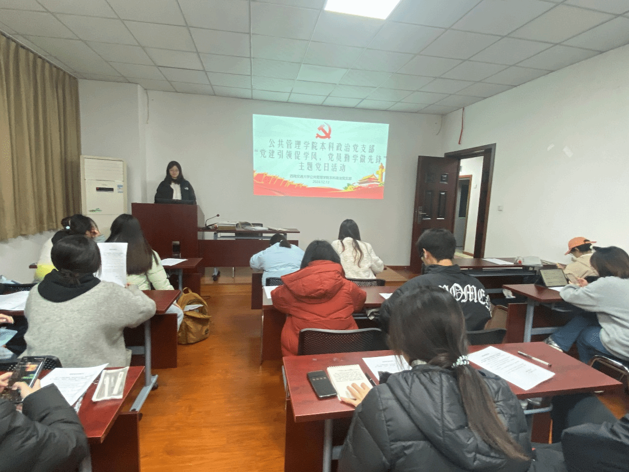 为进一步落实立德树人根本任务,充分发挥党组织战斗堡垒作用和党员先锋模范作用,以党建引领带动学院整体学风的优化与提升,切实解决部分学生在学业上存在的困难与困惑,助力学生全面成长成才。在2024-2025学年第一学期期末考试到来之际,公共管理学院本科党支部依托学院学生学习实际,开展“学风建设,党员先行”学风建设系列主题党日活动。