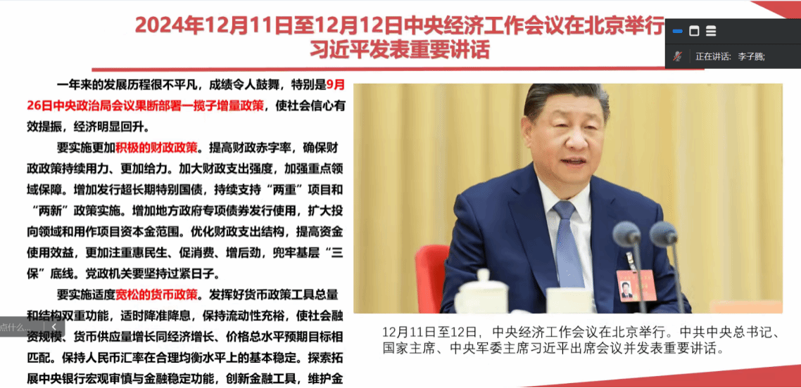 本科政治党支部在政治学习后,石若钰、唐悦、陶熙中、陶玉四位同志从专业学习出发,结合自身经历分享了本次政治学习的心得感悟。其中,石若钰同志表示,回顾2024年,中国大地上所发生的一切历历在目,身为新时代青年,她觉得在崭新的2025年,自身应该仍旧紧紧跟随党和国家的步伐,更加努力学习与工作,与祖国共同步入更美好的明天。