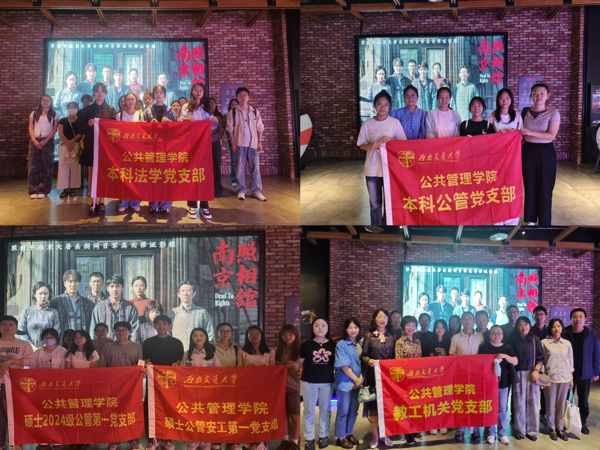 为持续深化党史学习教育成效,大力弘扬以爱国主义为核心的伟大民族精神,引导广大党员从历史中汲取奋进力量,西南交通大学公共管理学院党委精心组织开展 “铭记历史 缅怀先烈 珍爱和平 开创未来” 主题党日活动,学院全体师生党支部党员参加活动,集中观看爱国主义题材电影《南京照相馆》。