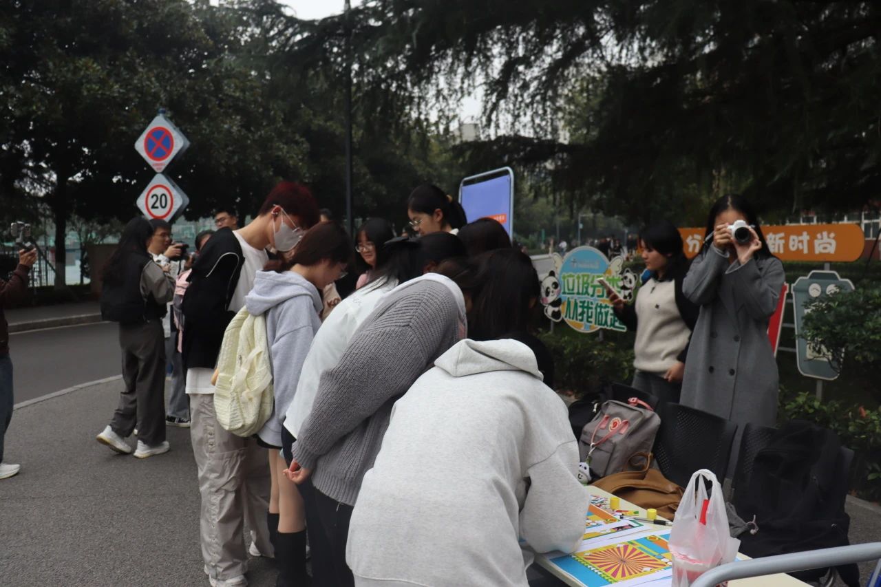 记者体验活动于上午11:30准时开始,期间由于天气原因,举办“阵地”从一食堂十字路口迁至四号教学楼入口处,但细雨并未浇灭大家的热情。