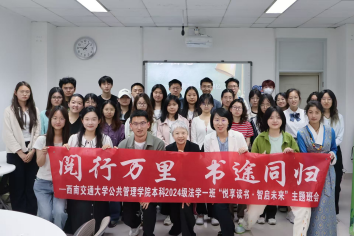 为深入学习贯彻习近平新时代中国特色社会主义思想,引导激励青少年学生爱读书、读好书、善读书,立志为中华民族伟大复兴而读书。2025年4月24日,本科法学2024-01班在“世界读书日”来临之际,举办以“阅行万里,书途同归”为主题的特色班会,公共管理学院党委书记高凡教授、法学系夏永梅老师、辅导员陈泽东老师参加本次活动。
