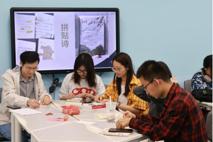 最富创意的“文字拼图实验室”环节将班会推向高潮。同学们化身“文字魔法师”,从泛黄书页中撷取碎片化词句,在卡纸之上重组为独一无二的拼贴诗。有人将哈萨克语中“我清楚地看见你”与“宇宙浩瀚无边”拼贴,碰撞出跨文化的浪漫火花;有人用“黎明醒来”“久适的晴朗”组合出春日哲思;更有同学将专业课程名称“政治学概论”与“在路上,再出发”拼接,赋予文字别样的学科温度。给文字以新生,在笔尖跳起灵动的舞蹈,同学们积极分享自己的创作,现场洋溢着此起彼伏的惊叹与掌声。