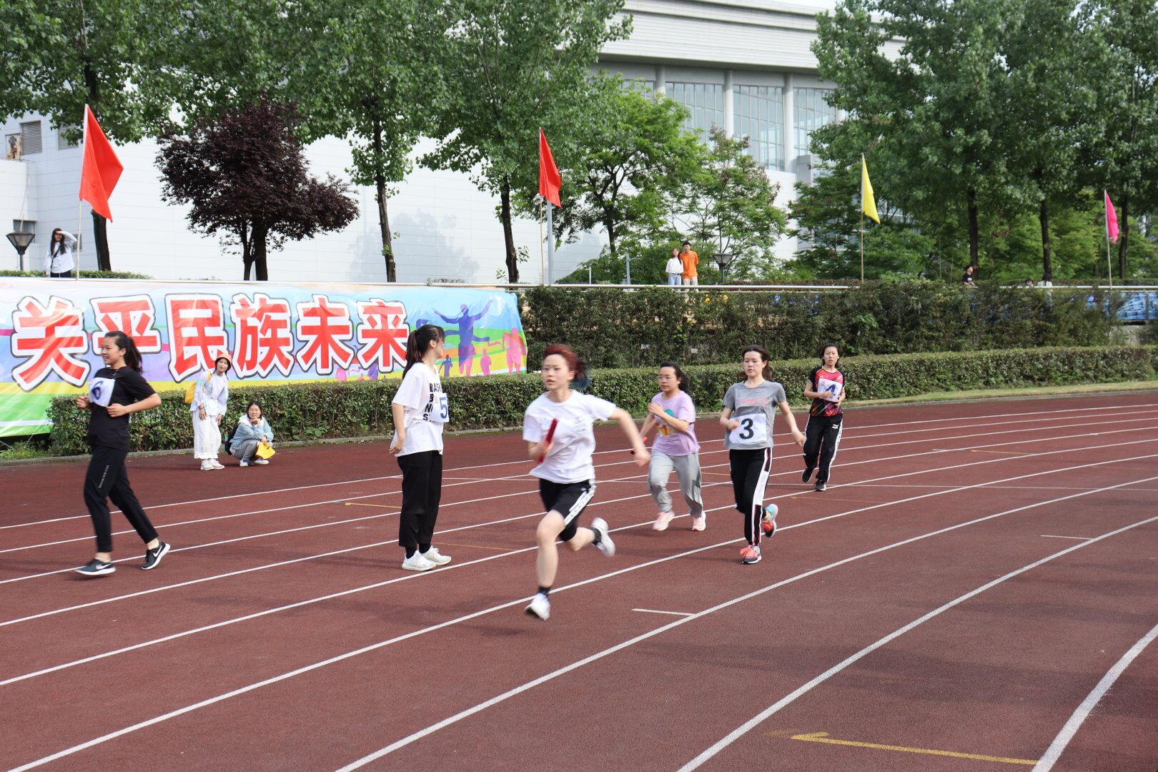 接力赛不仅是对运动员个人速度与爆发力的考验,更是对队友之间默契程度和团队精神的考验。赛场上,只听一声清脆的枪声响彻天际,第一棒迅速起步,如离弦之箭,冲出起跑线。一时间,呐喊声、加油声在跑道两边响起,将整个赛场点燃。第二棒、第三棒的选手也不甘示弱,手握队友传来的接力棒便立即迈开双腿,向前冲去,那矫健的步伐粲然升起跃动的渴望。加速、超越、冲刺!一步步奔向终点,一点点迎接胜利的曙光。位于最后一棒的选手在此起彼伏的加油声中,奋力冲向四个人共同的终点。最终,公共管理与政法学院荣获4×100米女子小组第二,男子乙组第一、校际第二的优异成绩!