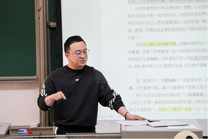 为充分发挥全媒体时代宣传工作的先行先导作用,营造良好的宣传环境和舆论氛围,进一步提升学生新闻素养和创新能力,提高学生新闻宣传工作水平,公共管理学院邀请物理科学与技术学院团委书记、学工组副组长雍腾老师为我院学生新闻宣传骨干开展以“用好叙事‘六要素’,从讲故事的角度‘讲’新闻”为题的培训活动,培训于2024年3月28日下午在九里校区4210教室举行。公共管理学院新闻中心、学生会、研究生会、青年志愿者协会、团建中心、党建中心负责宣传工作的学生骨干,各班宣传委员,以及学生等共计一百五十余人参加了培训。