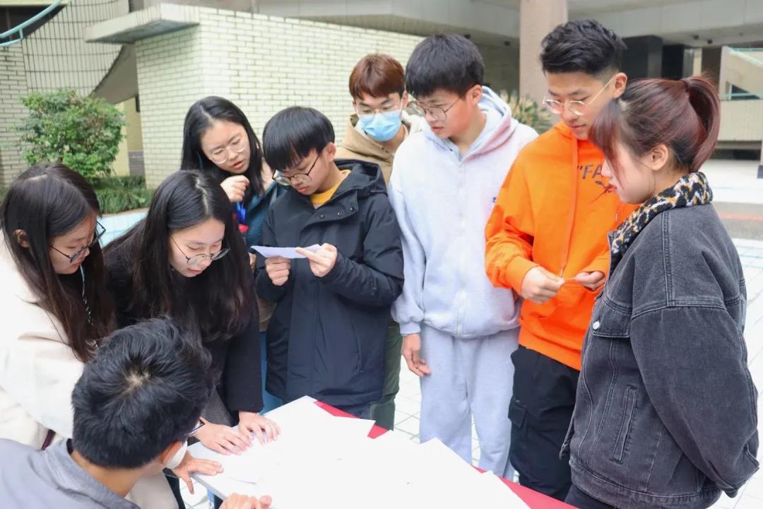 下午14:00,活动准时开始,同学们陆续入场、签到并参与活动。少顷,同学们组好队、在每个项目前纷纷排起了“长龙”。人声鼎沸代替了原来的寂静冷清;原本空旷的场地中填满了兴致勃勃的同学。天气虽冷,阵阵寒风并未吹灭同学们的热情,每个人都沉浸在这欢乐的氛围中,享受着活动的乐趣。同伴间分享着有趣的话题,欢声笑语萦绕在场地上空。活动中的同学们专注认真,他们有的俯身细读,屏息凝视,逐字分析,寻找文本错误;有的与队友同心合作,时而小声商量、时而互相鼓励,积极参与每个项目,为团队解决问题提供自己的智慧、贡献自己的一份力。