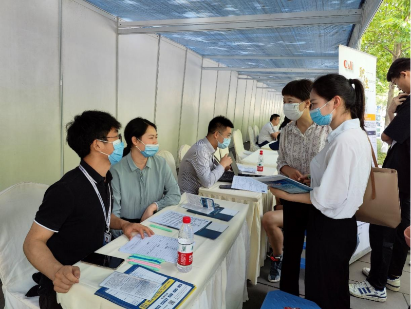 Later, Secretary Gao Fan and Dean Wang Yongjie led the graduates to communicate with the employers, looked into the basic information, talents demand, and job requirements of the employers, and introduced the basic information of the School of Public Affairs and Law and the graduates to the employers, and then recommended graduates at the scene to them, expecting the employers to supply with more opportunities for graduates so as to deepen exchanges and cooperation.