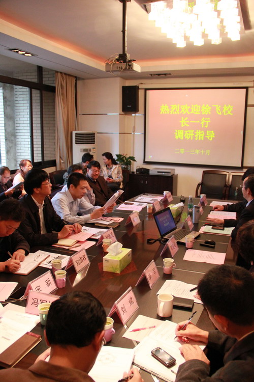 The morning of October 16th, President Xu Fei led and leaders of President Office, strategic development department, Graduate School, Department of personnel, Department of science and technology, laboratory and equipment management office investigated and guided about how to develop faster and better of liberal arts at 0401 meeting rooms ,the school of public administration. the main leaders and some teachers of school of Public administration, School of economics and management, School of foreign languages attended the meeting. The meeting chaired by the Zhao Yanling, director of President’s Office.