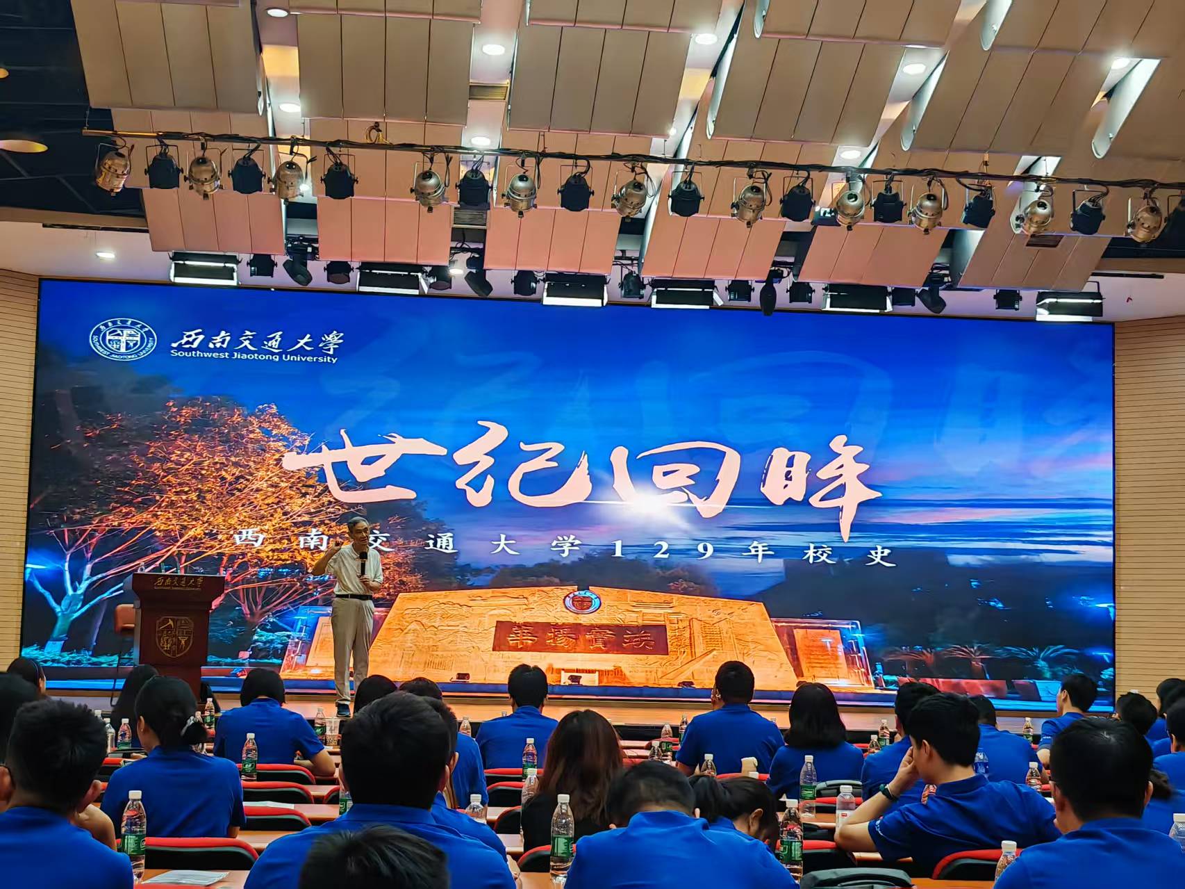最后,西南交通大学梁锦唐教授为全体新生带来了以“世纪回眸”为主题的校史讲座,梁教授从历史沿革、精神传承到学科积淀,生动梳理了交大在不同时期的使命担当,他以鲜活的校史故事为引,解读“竢实扬华,自强不息”校训的时代内涵。这场校史讲座不仅是知识的传递,更激励新生以校为荣、承续精神,为后续MPA学习与公共管理实践筑牢思想根基。