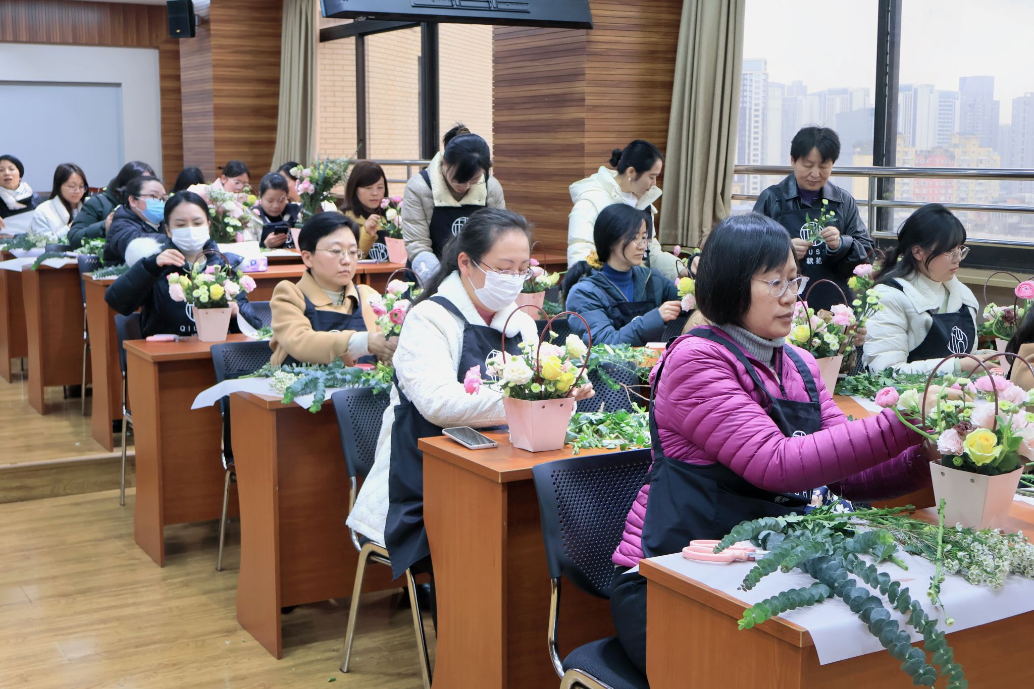 活动伊始,花艺师向老师们介绍了本次插画沙龙活动使用的花卉以及插花的技巧。黄玫瑰明媚、洋桔梗娇艳、雏菊洁白……每一种花都诉说着不同的品质,也象征着女性不同的美好。现场充满温馨的节日气氛,老师们认真倾听,欢乐交谈,在花艺师的带领下,纷纷行动起来。