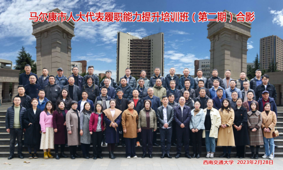 2023年2月27日,马尔康市人大代表履职能力提升培训班(第二期)在西南交通大学九里校区顺利开班。在开班式上马尔康市人大常委会副主任邓锡英同志做开班动员讲话。西南交通大学公共管理学院副院长雷斌同志向全体学员做校史、学院等情况汇报。本次培训旨在提升马尔康全市人大代表责任意识和履职能力,切实发挥代表作用。设置了“新时代人大代表履职能力提升的路径;人大代表如何联系人民群众,做好群众工作;《代表法》及代表履职实践”等专题课程。