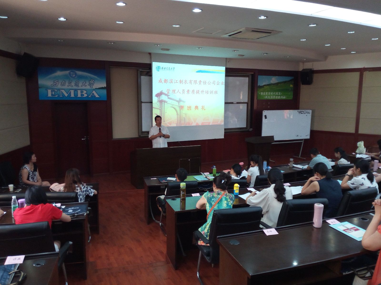 2016年6月20日,由我校干训基地承办的成都滨江制衣有限责任公司企业管理人员素质提升专题培训班在我校顺利开班。西南交通大学公共管理与政法学院副院长雷叙川、成都滨江制衣有限责任公司党委书记李文莉及来自成都滨江制衣有限责任公司的60名参训学员共同出席了开班典礼。